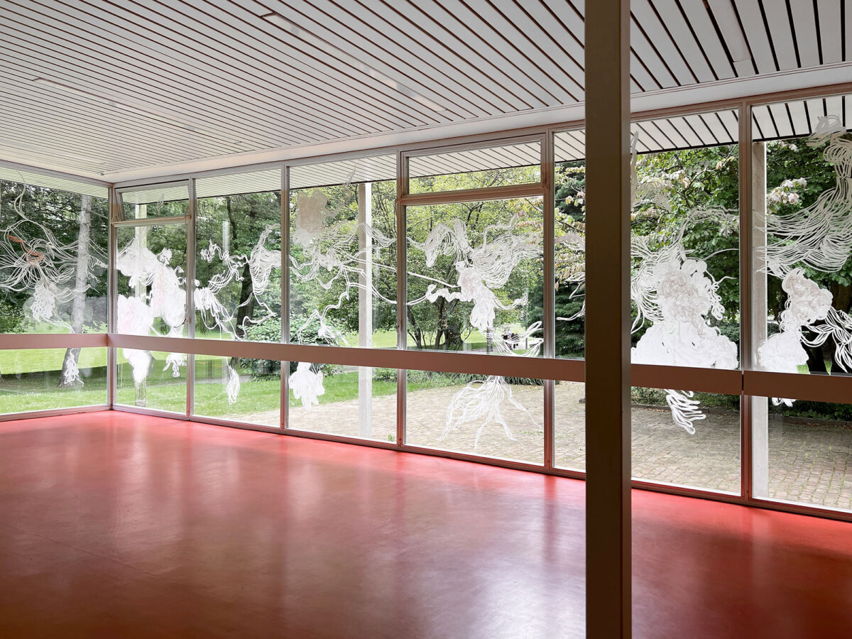 Glaspavillon im Grugapark Essen, Gouachezeichnung auf Glas2024